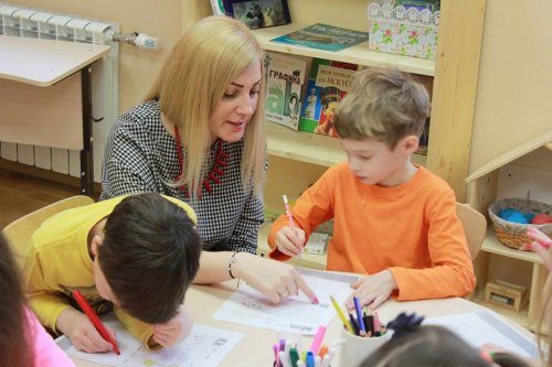 В Монтессори классе дети учатся в маленьких группах, для которых уровень учебного материала специально подбирается на основе наблюдений учителя.