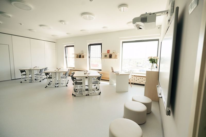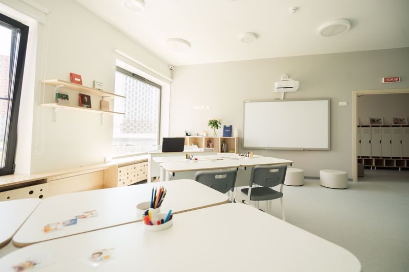 Для комфортного обучения в Rybakov PlaySchool есть все необходимое. Школа оборудована современными аудиториями, оснащенными интерактивным оборудованием, а также необходимыми игровыми материалами и оборудованием.