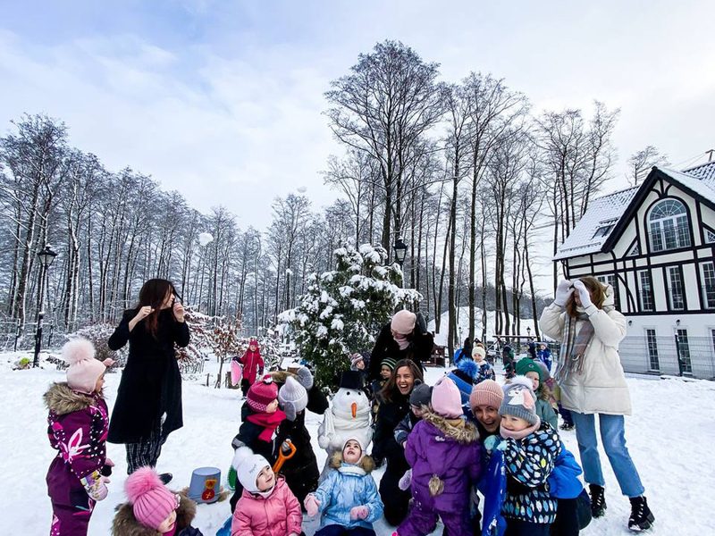 Территория и интерьер детского сада создают волшебную атмосферу с причудливыми домиками, героями мультфильмов и уютными пространствами для творчества.