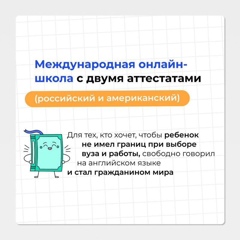 SHKOLA предлагает домашнее обучение по американской программе для учащихся из любой точки мира. Образовательный процесс аккредитован Cognia и WASC и соответствует стандартам штата Флорида. Ученики имеют возможность получить американский школьный диплом, дающий право выбора среди 800 вузов по всему миру.